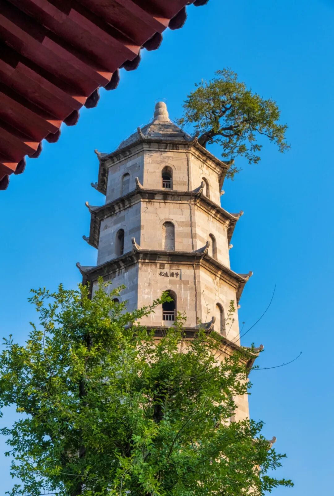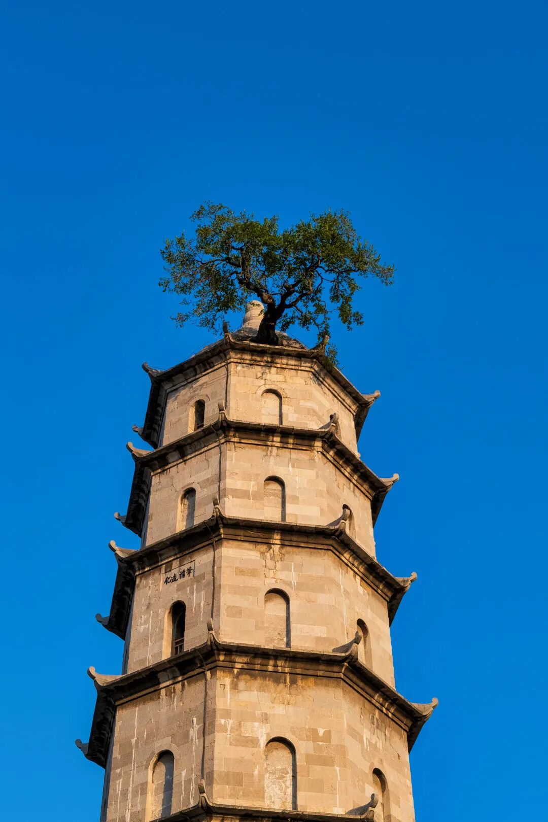 大叶朴树生于青云塔顶,主干三米有余,离地数十米,无土无泥,根深塔内,久涸不枯。虽经悠悠岁月,仍不失苍翠;虽饱经沧桑,却生机蓬勃。