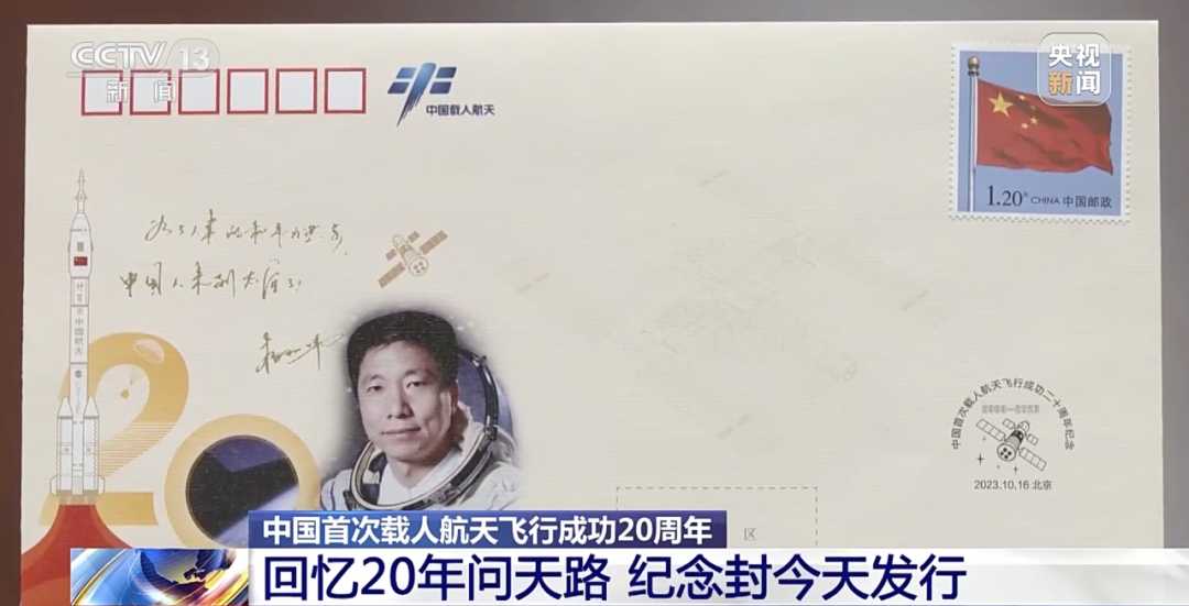 21日,中国集邮有限公司发行《中国首次载人航天飞行成功20周年》纪念封一枚。