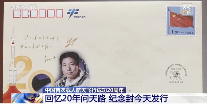 21日,中国集邮有限公司发行《中国首次载人航天飞行成功20周年》纪念封一枚。