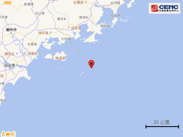 周边县城:震中距南澳县39公里、距福建东山县43公里、距福建诏安县49公里、距饶平县55公里、距澄海区67公里,距汕头市72公里。