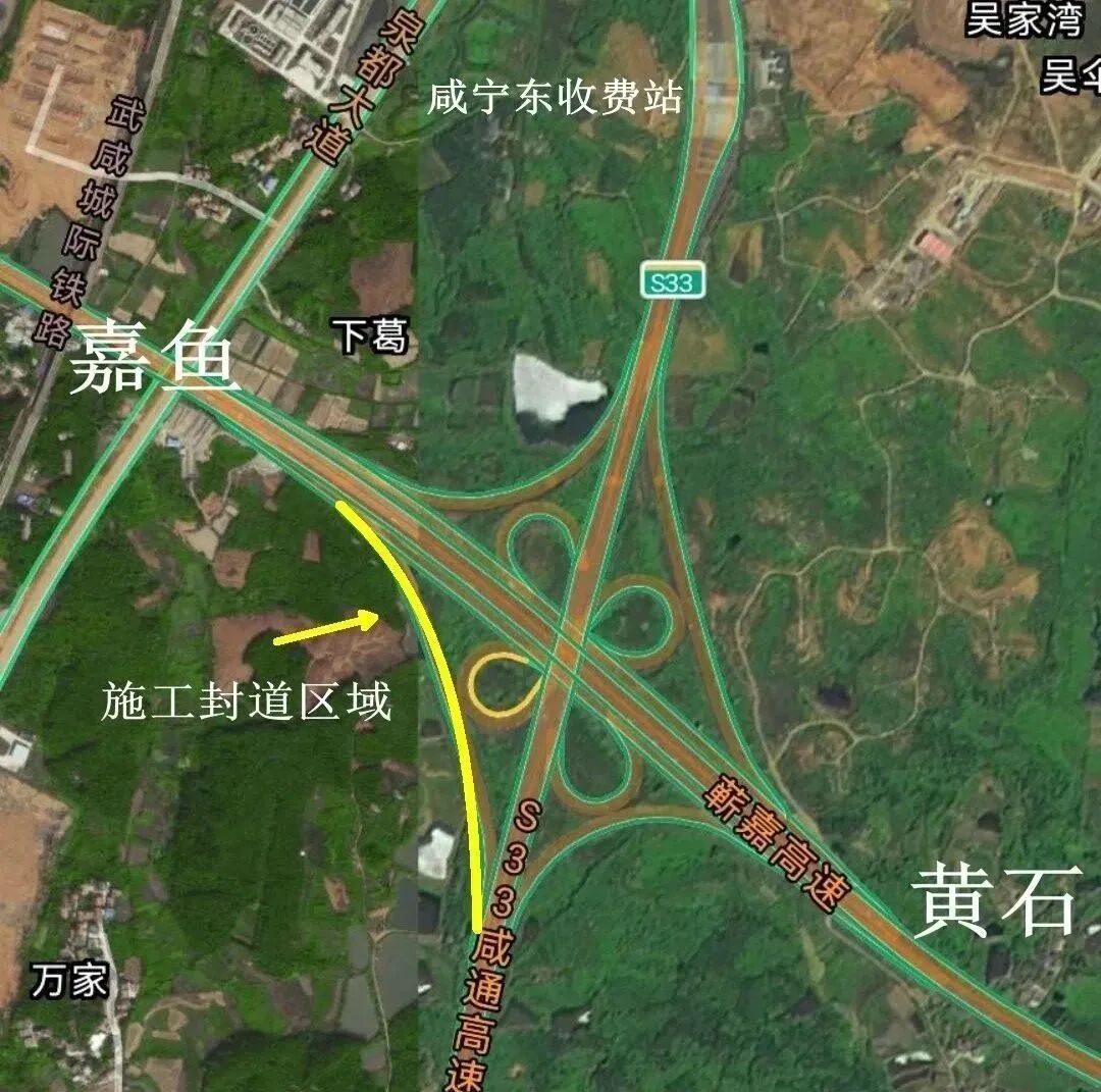 10月24日:S78蕲嘉高速(蕲春方向)转S33咸通高速方向匝道封闭,车辆请从张公收费站下站绕行;错过张公收费站则从咸宁东收费站下站调头。