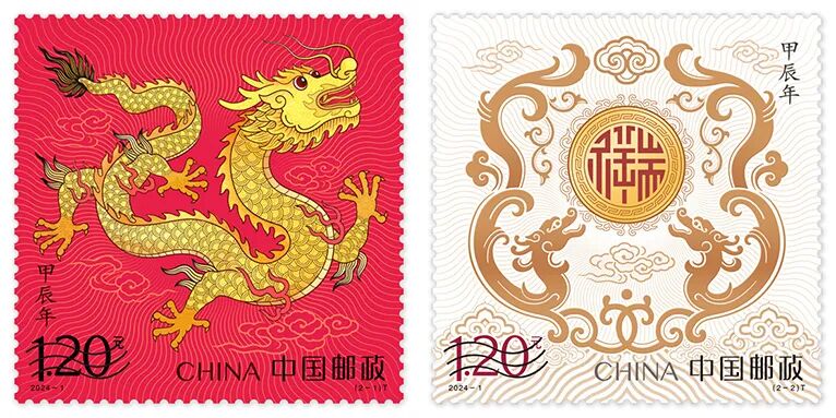27日,中国邮政公布龙年生肖邮票——《甲辰年》特种邮票图稿并同步启动邮票印制。特种邮票将于2024年1月5日正式上市发售。