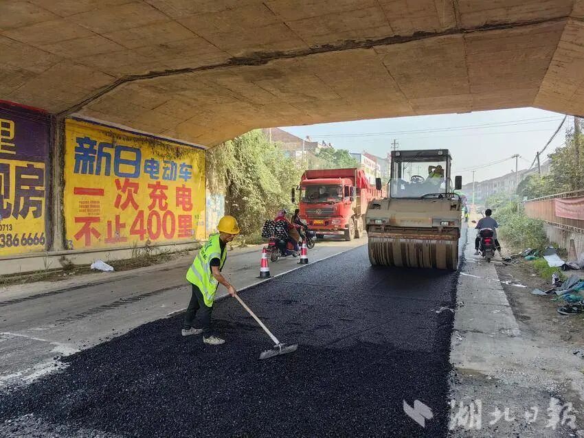 项目工期是从今年的9月份到明年的6月份,工期10个月。考虑到京九铁路下穿通道建设时间长、难度大,武穴市交通局对京九铁路桥下原有的2通道按二级路面标准黑化,方便群众临时出行。在武穴市京九铁路下穿通道段道路施工现场,大型摊铺机、压路机正在路上来回作业,滚烫的沥青倾倒在路面上,工人们挥动着铁锹,忙得热火朝天。