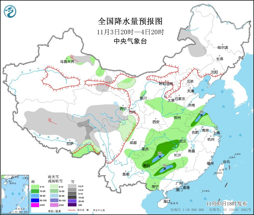 中央气象台预计,3日20时至4日20时,内蒙古中东部、新疆沿天山地区、西藏北部和东部、青海南部、甘肃北部、川西高原北部等地部分地区有小到中雪或雨夹雪。江苏北部、安徽北部、湖北南部、湖南北部和西部、贵州东部和中部、广西北部等地部分地区有小到中雨。