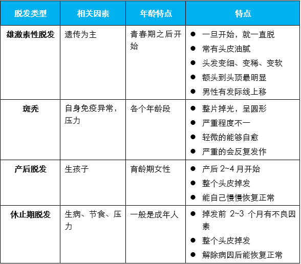 表1. 不同脱发的特点