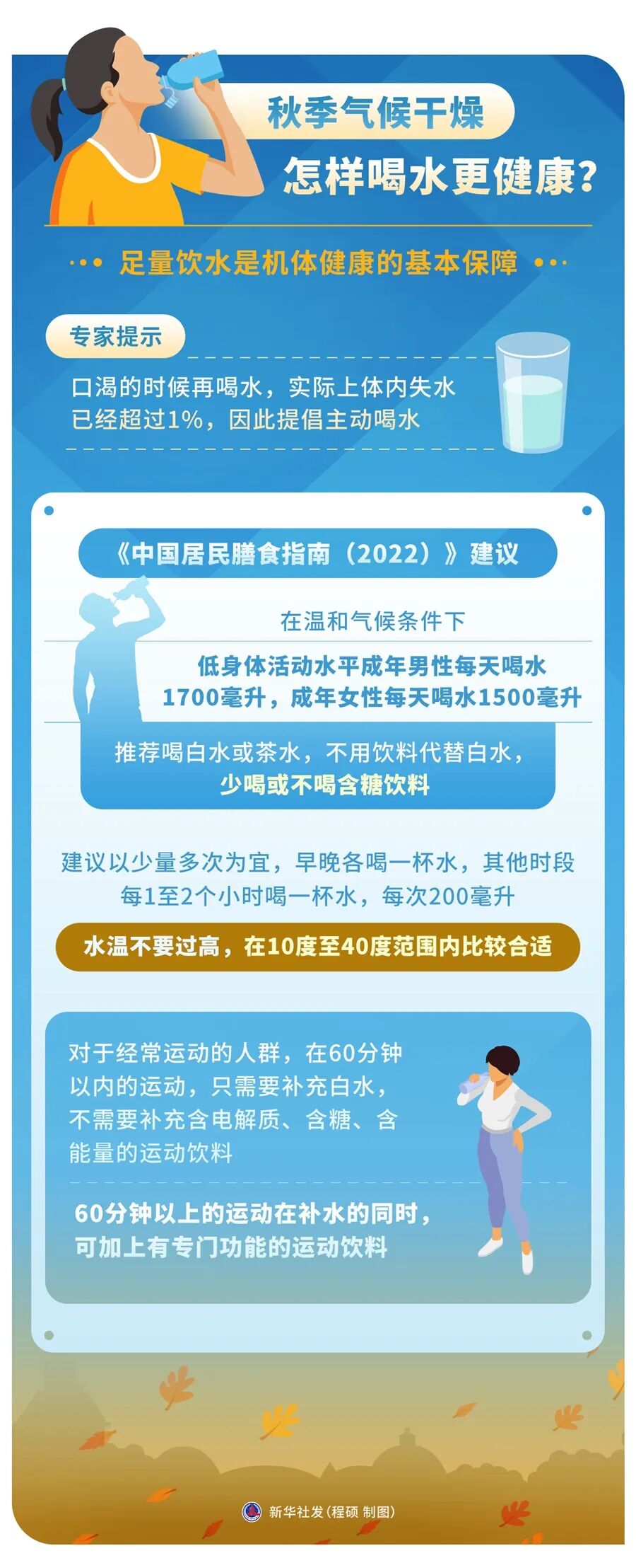 专家提示,口渴的时候再喝水,实际上体内失水已经超过1%,因此提倡主动喝水。建议以少量多次为宜,水温不要过高,在10度至40度范围内比较合适。