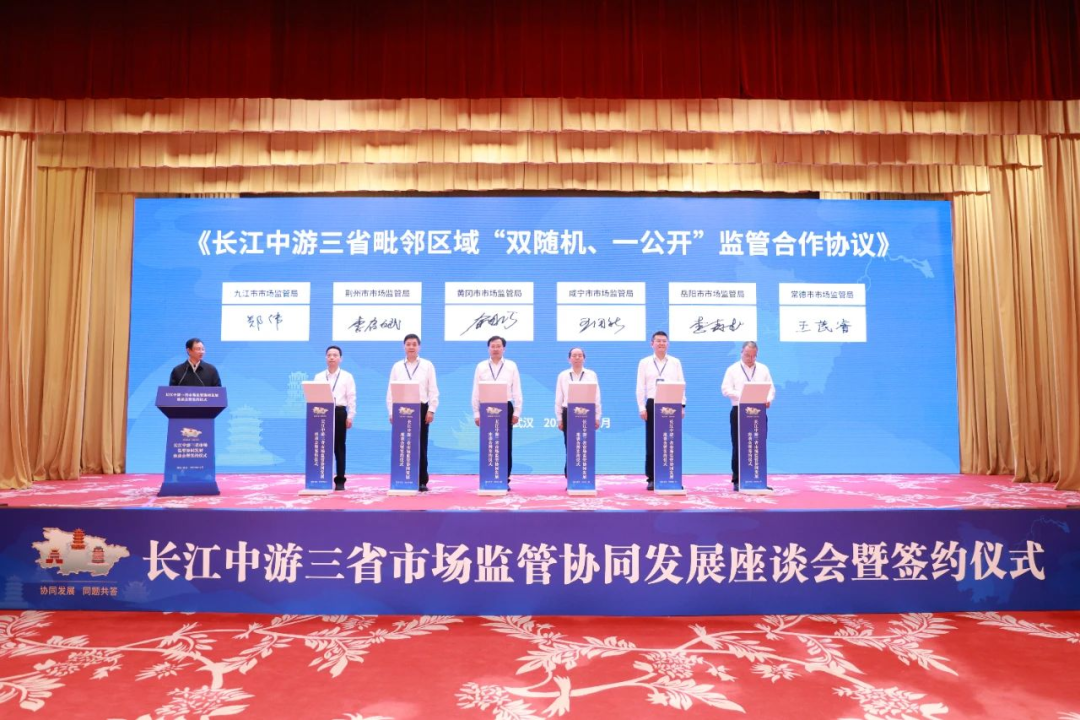 黄冈市与九江市、荆州市、咸宁市、岳阳市、常德市等地市场监管系统共同签署了《长江中游三省毗邻区域“双随机、一公开”监管合作协议》。