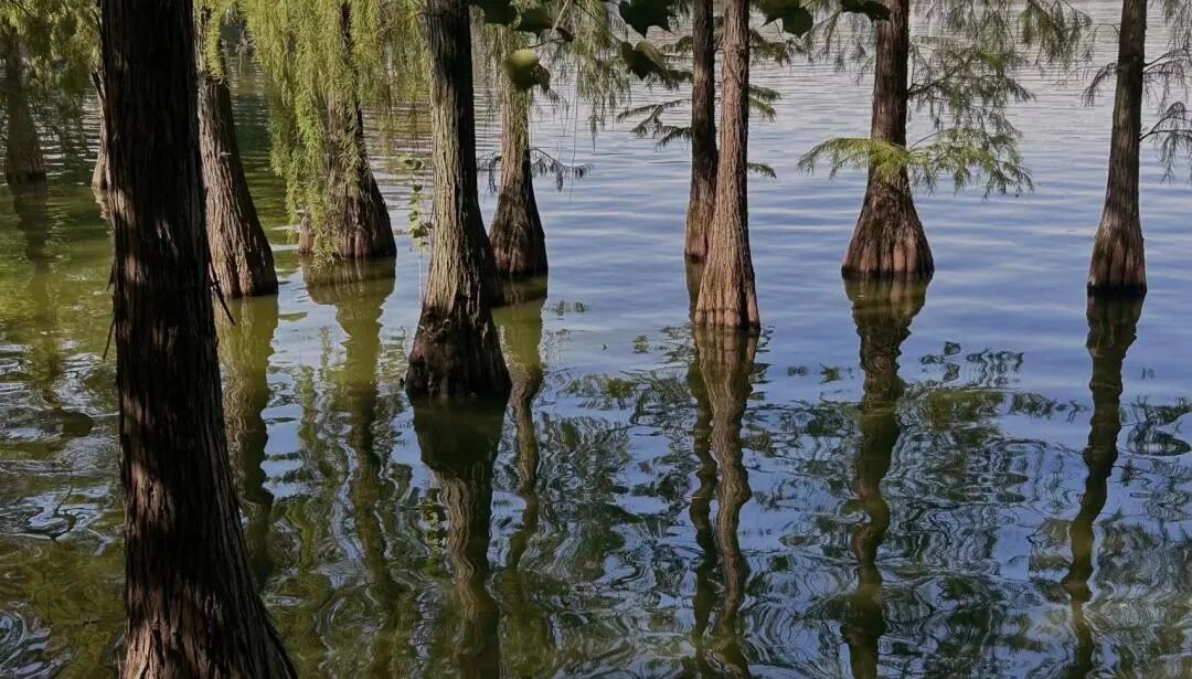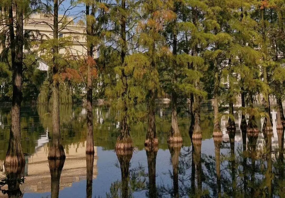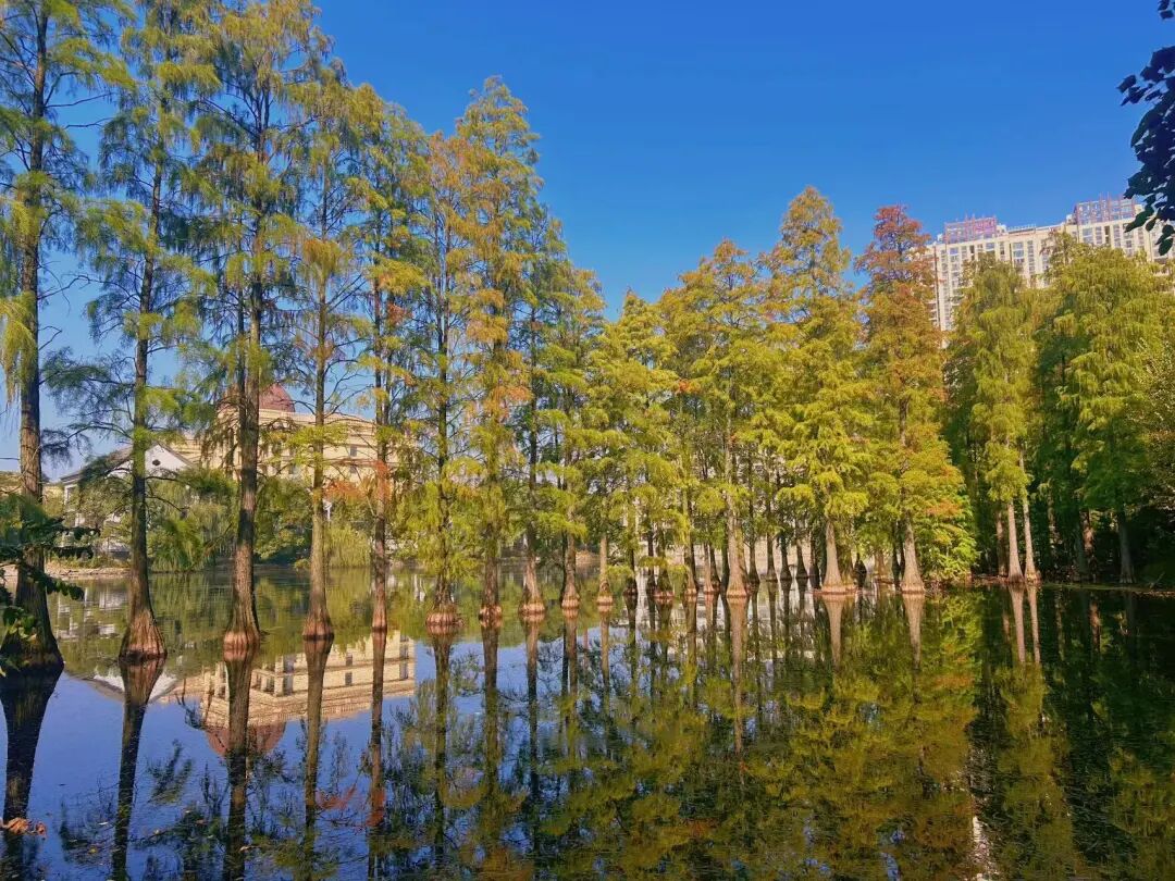 “一湖倒影一湖诗 半湖火焰半湖蓝”