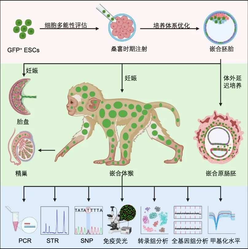嵌合体猴研究模式图。