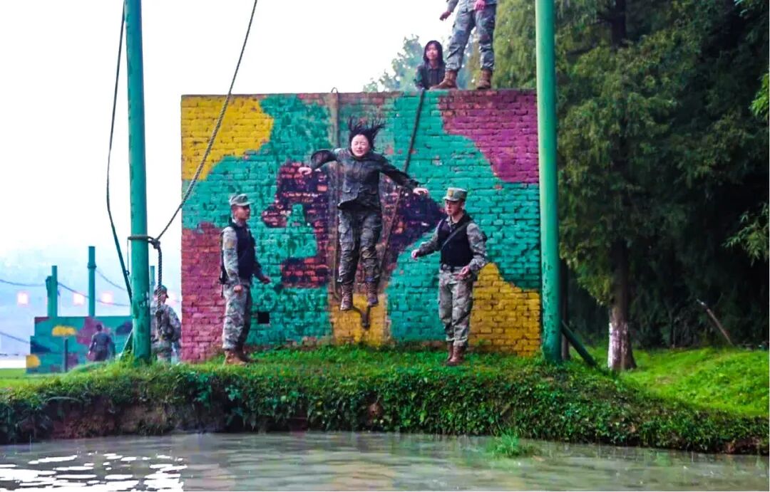阻绝墙跳水4米的高墙、1米的泥坑她们直接跳下