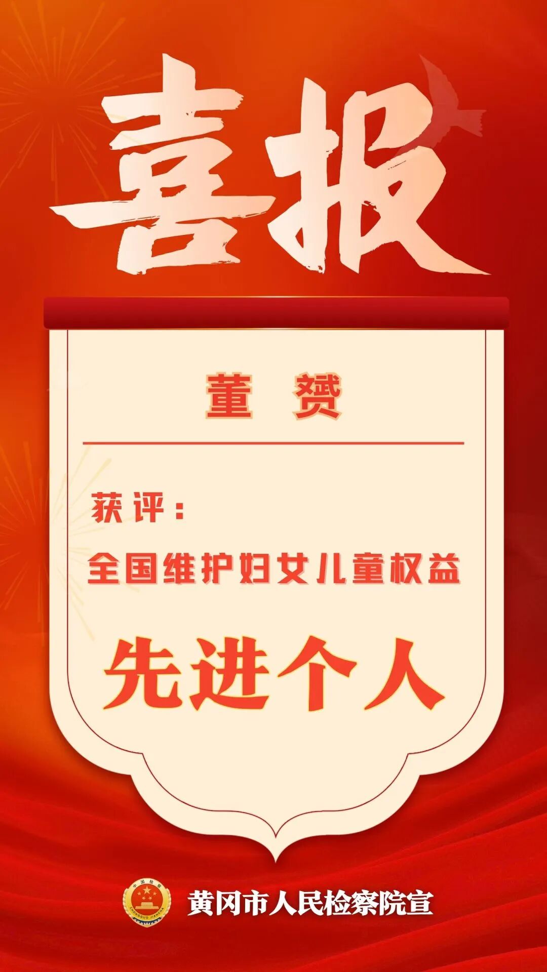其中,黄冈市人民检察院第七检察部董赟荣获“先进个人”称号。