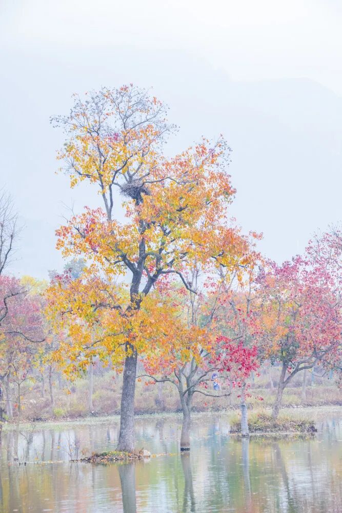 罗田九资河红叶我从2003年开始拍起,整整拍了20年,每年都说明年再不拍了,到了第二年红叶红了的时候又总是经不住诱惑,扛起机子钻到红叶树下不肯离去。这不,今年11月6日又在九资河住了三天,感觉与去年有点不一样。 来源:镜景(拍摄:方华国 )