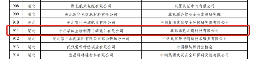 国家经济和信息化部公示2023年湖北省绿色制造名单,蕲春中农华威生物制药(湖北)有限公司荣登“绿色工厂”榜单。