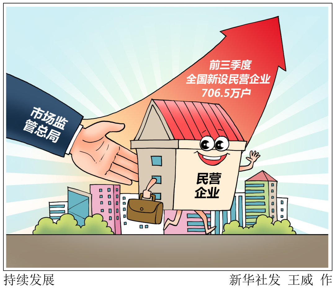 市场监管总局发布的数据显示,前三季度全国新设民营企业706.5万户,发展韧性持续显现。