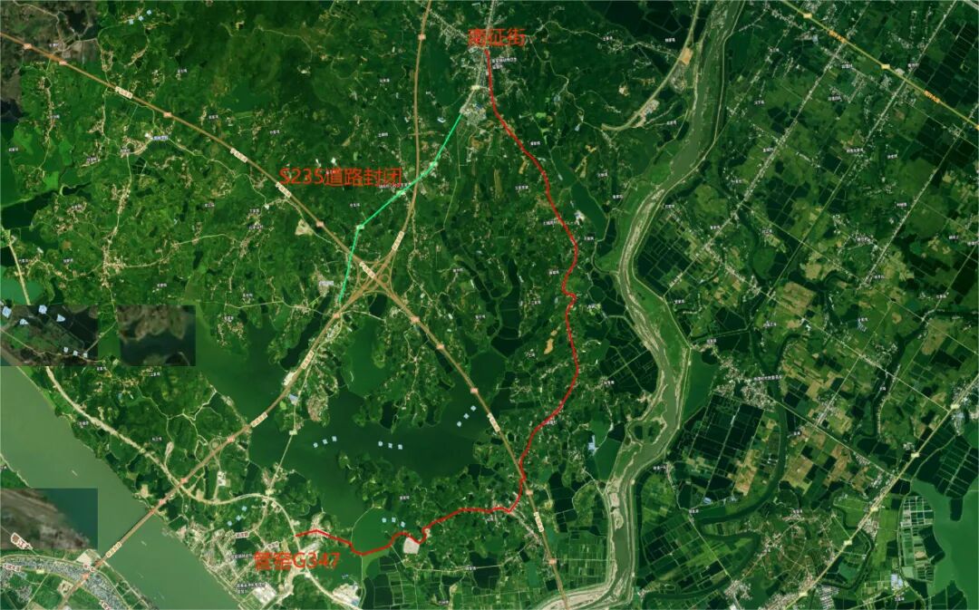 三、绕行措施:1.施工期间将采用道路封闭施工;2.S235寒婆岭至红旗岗段(绿色路线),禁止通行;3.管窑至南征原计划走S235寒婆岭至红旗岗段车辆,在管窑村G347余岚线路口进入余岚线,途经竹林墩村、西湖里村、土城岗村,在南征街驶入S235(红色路线),通往县城方向,南征至管窑方向车辆也从此路线逆向行驶。