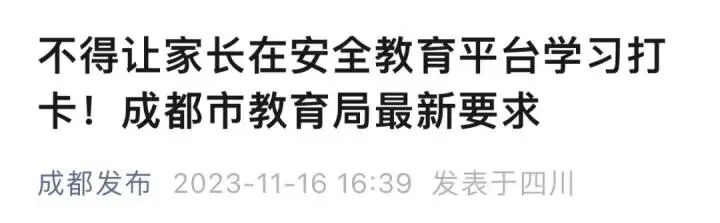 11月16日,成都市教育局发布最新要求,不得让家长在安全教育平台学习打卡——