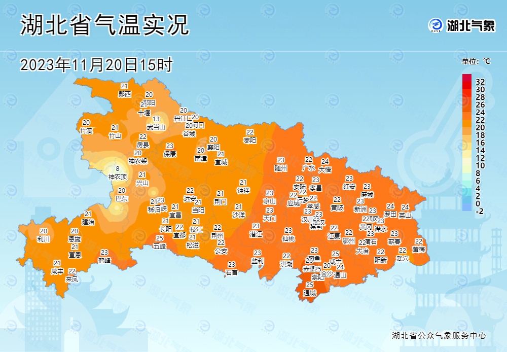 下午3点湖北省气温都升至19℃以上