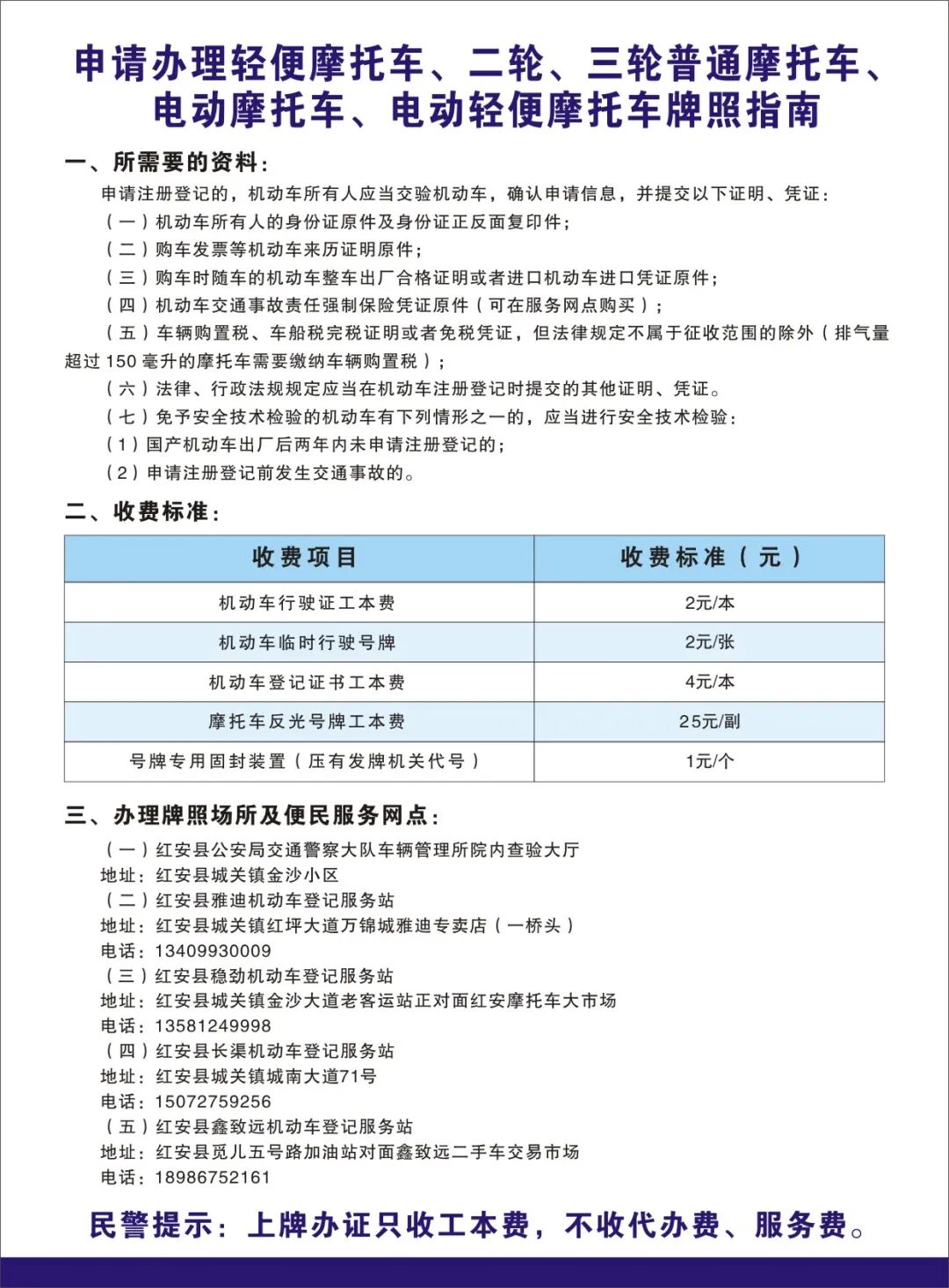 申请办理轻便摩托车、二轮、三轮普通摩托车电动摩托车、电动轻便摩托车牌照指南: