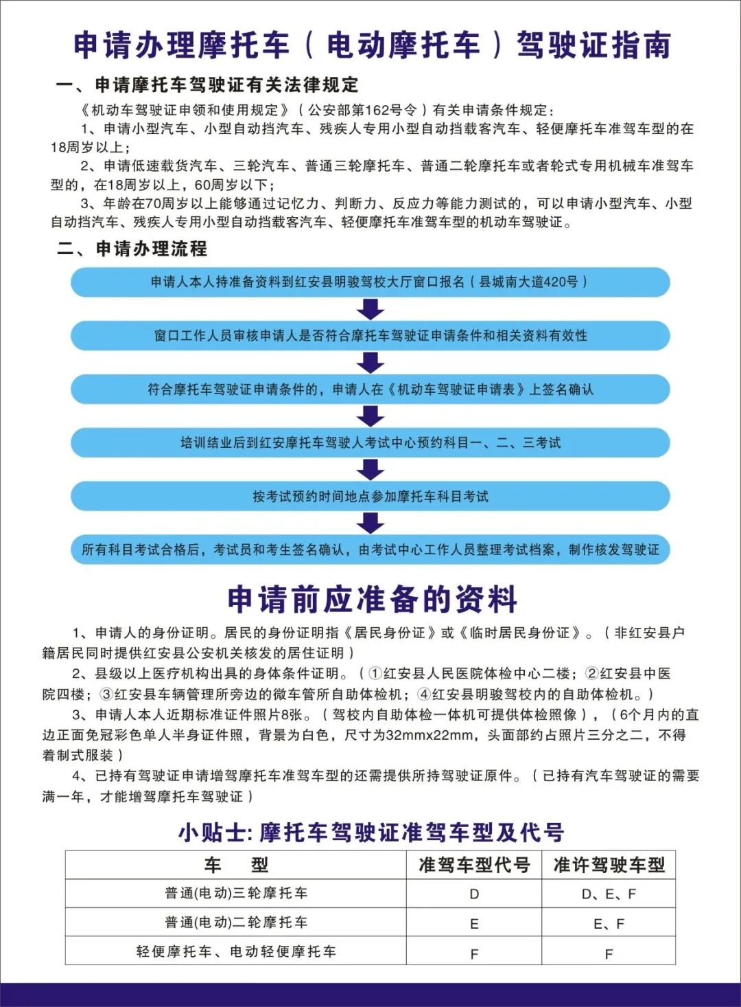 申请办理摩托车 ( 电动摩托车 )驾驶证指南:
