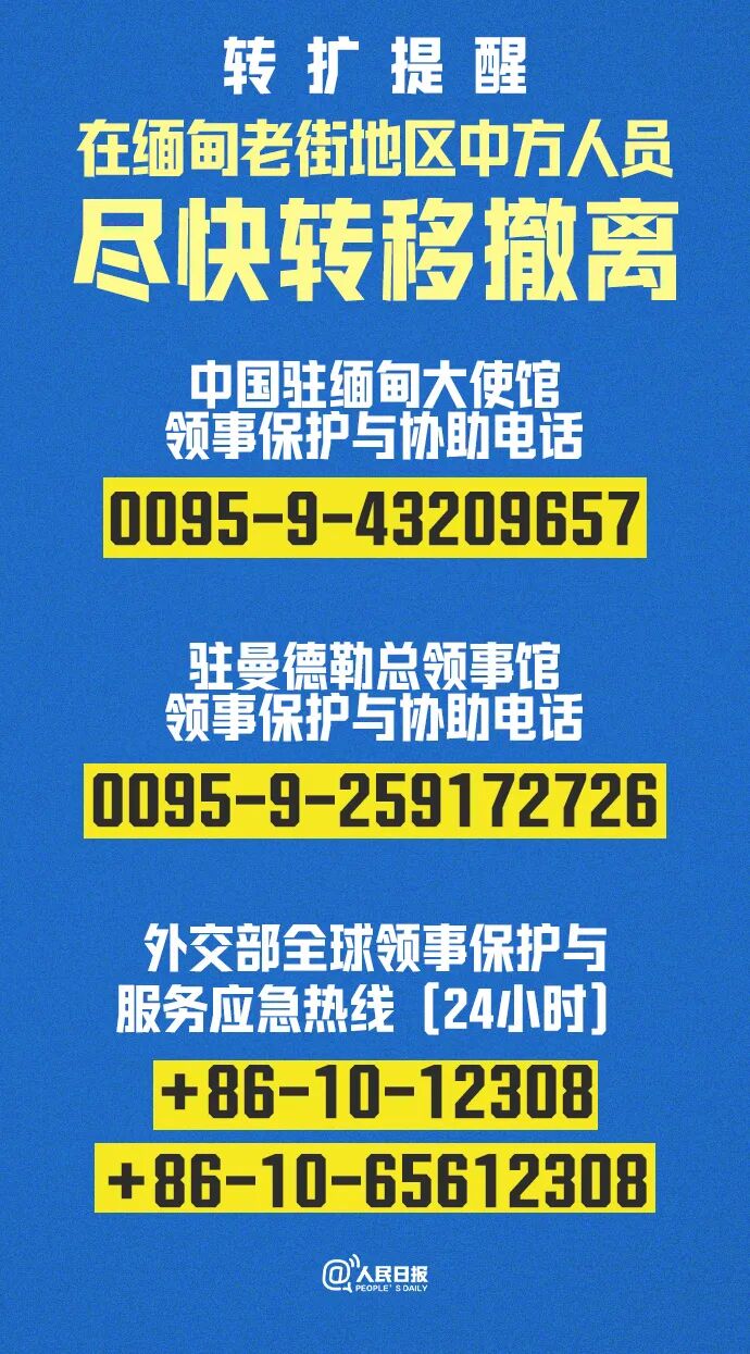 中国驻缅甸大使馆领事保护与协助电话:0095-9-43209657