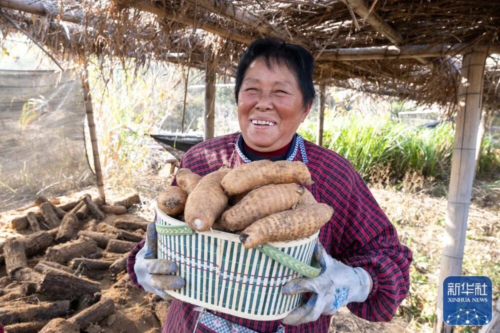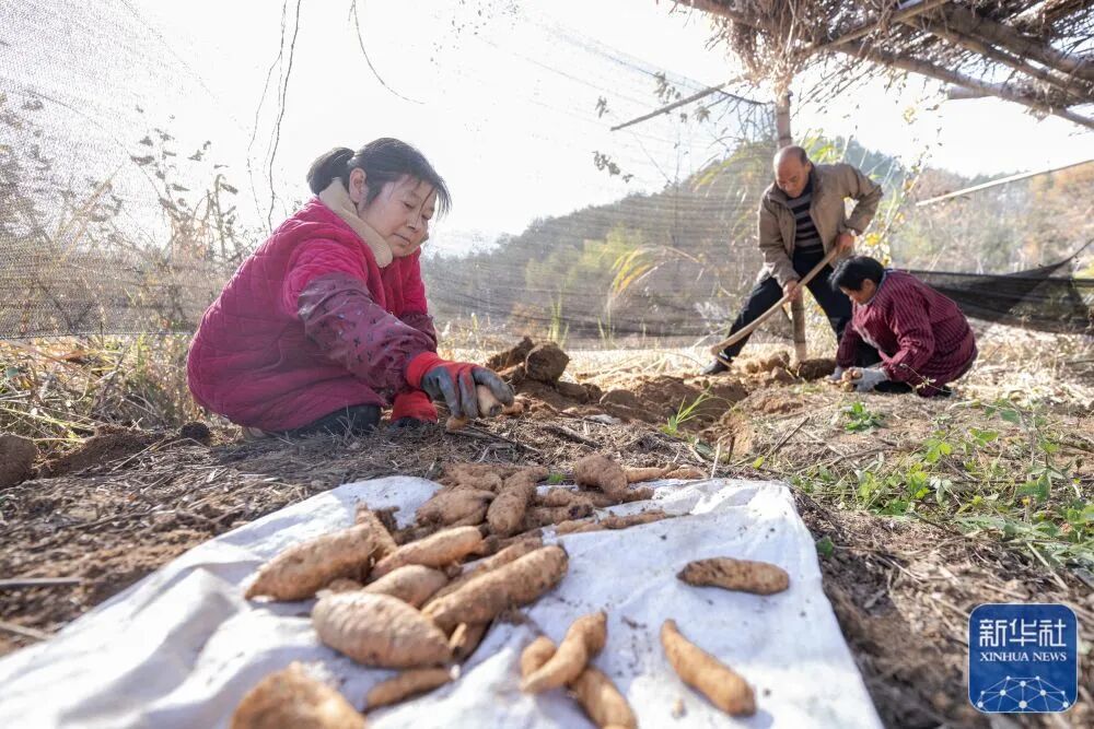 11月23日,在湖北省罗田县九资河镇葫芦石村,药农在田里收获天麻。