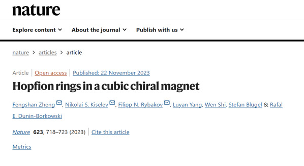 据华南理工大学消息,华南理工大学郑风珊教授联合德国于利希研究中心Nikolai S. Kiselev博士和瑞典乌普萨拉大学Filipp N. Rybakov博士等学者,首次实验发现磁霍普夫子(Hopfion)。相关成果发表在国际学术期刊《自然》(Nature)上。