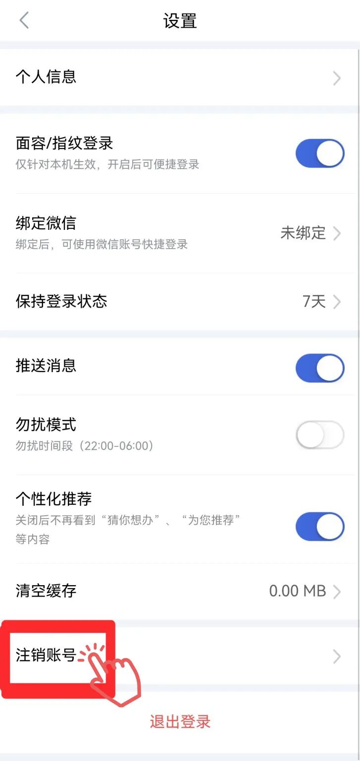 方法二:手机打开“鄂汇办”APP,在【我的﹣设置﹣注销账号】进行注销。