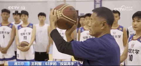 王利智之前是一名技术工人,特别喜欢钻研。退休以后,他跟着年轻人打了几次篮球,就喜欢上了。很快,爱钻研的王利智就开始琢磨怎么能提升投篮命中率,他发现自己之前从事的技术工作和投篮有相同之处。