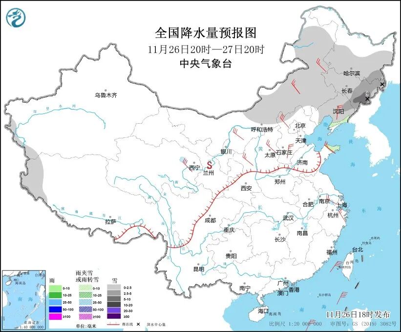 中央气象台预计,26日夜间至28日,长江以北大部地区气温普遍将下降4~6℃。26日20时至27日20时,内蒙古中东部、东北地区大部、山东半岛、西藏西南部等地部分地区有小到中雪或雨夹雪,局地有大雪。