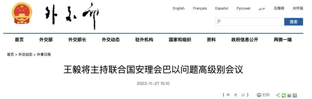 中国作为联合国安理会本月轮值主席国,将于11月29日举行安理会巴以问题高级别会议,中共中央政治局委员、外交部长王毅将赴纽约主持安理会会议。