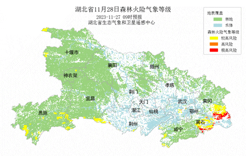 预计明天(28日)黄冈、黄石部分地区森林火险等级上升为极高等级。29日黄冈森林火险范围有所扩大,风险等级下降。