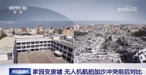 △无人机拍摄的冲突前后加沙地带的对比图像显示,如今加沙地带多地已化为废墟。