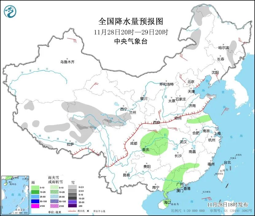 中央气象台预计,28日20时至29日20时,内蒙古东北部、黑龙江西北部和南部、吉林中东部、辽东半岛南部、山东半岛北部、西藏北部和西部、青海中南部、甘肃西南部等地部分地区有小到中雪,安徽北部、江苏中北部、湖北西部、湖南西北部和南部、江西南部、四川东北部、重庆、贵州北部、广西东部、广东中西部、海南岛东部等地部分地区有小雨。