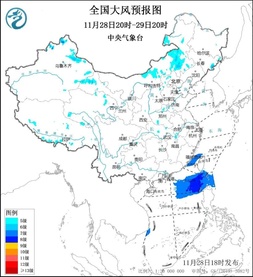 中央气象台28日18时继续发布大风蓝色预警:预计28日20时至29日20时,新疆北部、西藏南部、内蒙古中东部、甘肃河西、河北西北部、吉林东部、台湾岛南部等地部分地区将有5—6级、阵风7—8级的大风;台湾海峡、巴士海峡、南海东北部海域将有7—8级、阵风9级的大风。