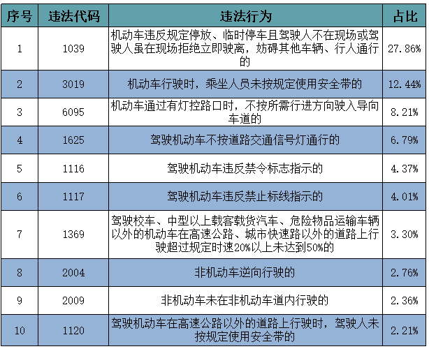 2023年湖北道路交通前十违法行为