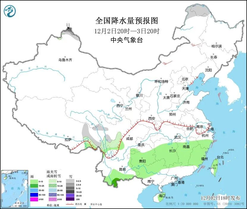 中央气象台预计,2日20时至3日20时,新疆北疆北部和北疆东部、内蒙古东北部、黑龙江西北部、西藏东部、川西高原等地部分地区有小雪或雨夹雪,其中,新疆北疆北部等地部分地区有中到大雪,局地暴雪。江南大部、西南地区东南部、云南南部、华南北部、台湾岛等地部分地区有小雨,其中,云南南部局地有中雨。