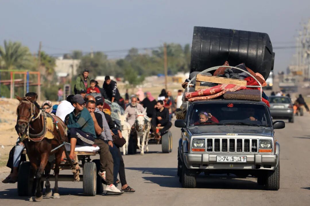△当地时间3日,加沙地带汗尤尼斯民众持续撤离。