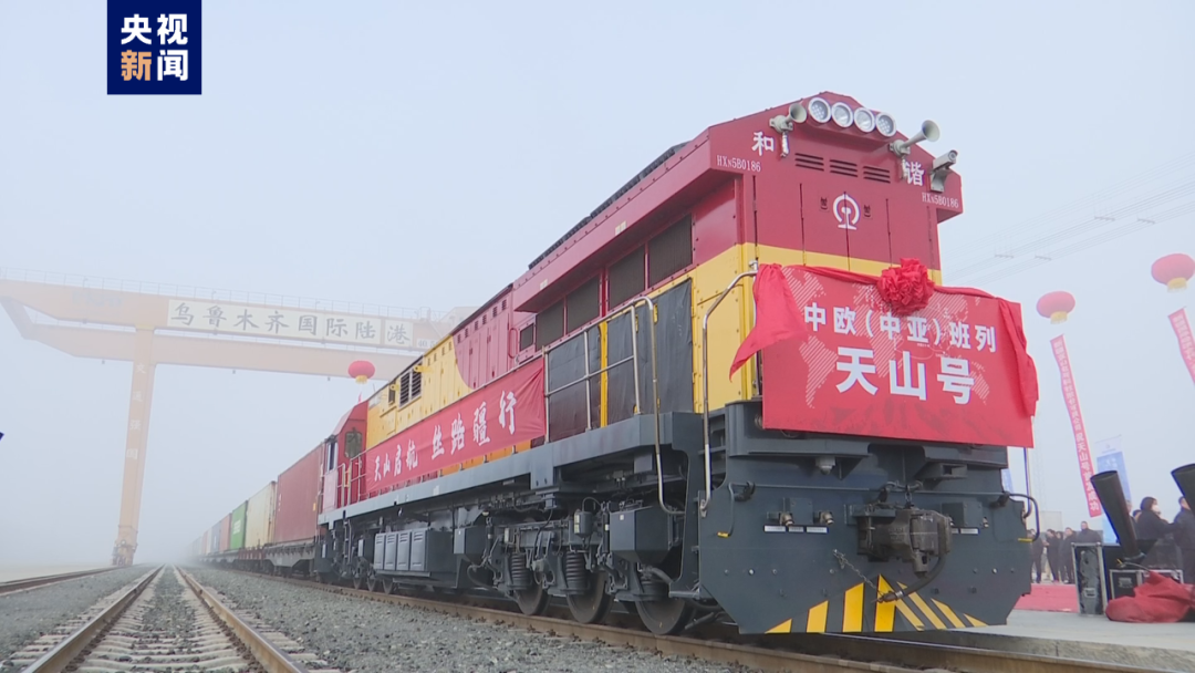 2日,“天山号”中欧(中亚)班列从乌鲁木齐国际陆港区驶出,这是新疆开行的首列自主品牌中欧(中亚)班列。