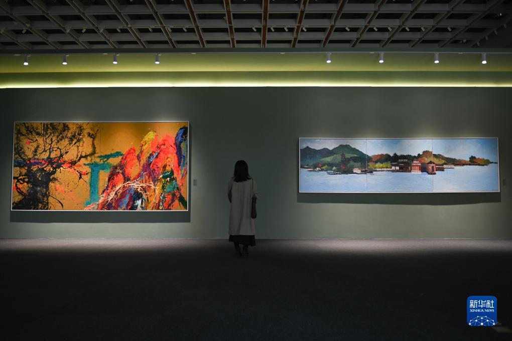12月3日,观众在“艺汇丝路”采风作品展参观。 12月3日,观众在“艺汇丝路”采风作品展参观。 当日,作为“良渚论坛”的配套活动,“艺汇丝路”采风作品展在浙江省杭州市开幕,展览展出来自83个国家的艺术家创作的152件作品。 新华社记者 黄宗治 摄