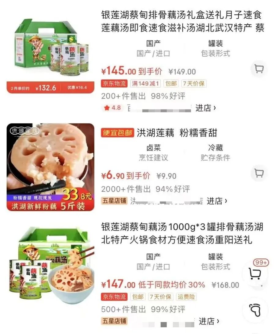 在电商平台上,有多款标称湖北藕汤的商品销售。