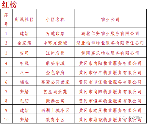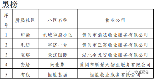 黄州城区2023年住宅小区物业服务项目“红黑榜”第一批名单公布: