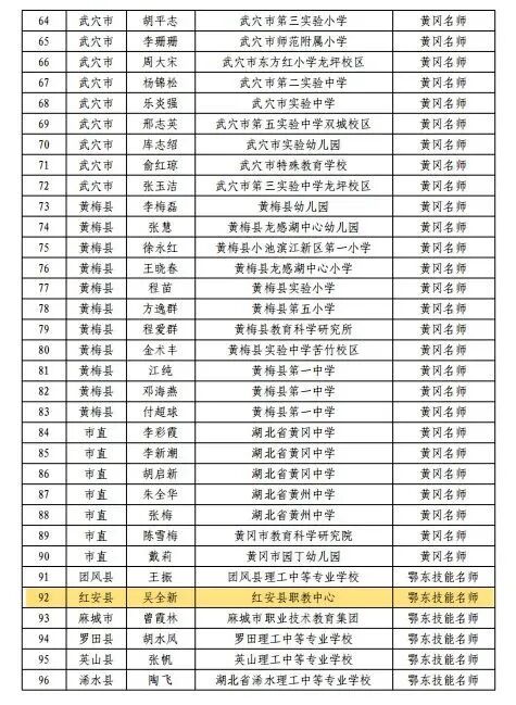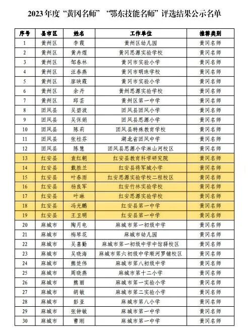 《2023年度黄冈名师、鄂东技能名师评选结果公示》