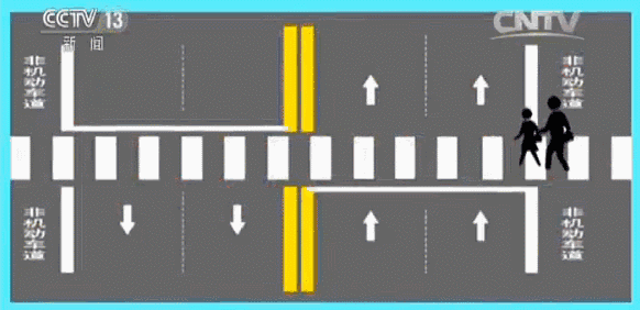 行人越过机动车道、非机动车道分割线,进入上述位置,机动车A、B应当停车让行。