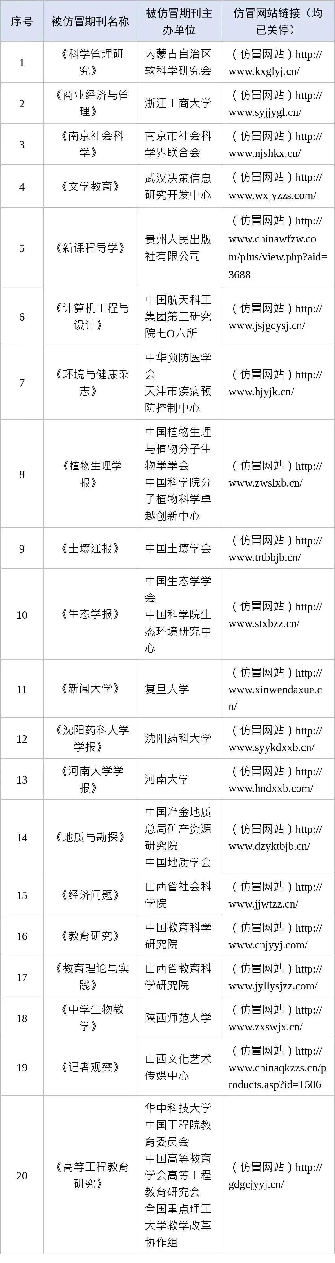 近日,中央网信办根据网民举报线索,会同相关部门依法受理处置一批仿冒学术期刊诈骗网站。