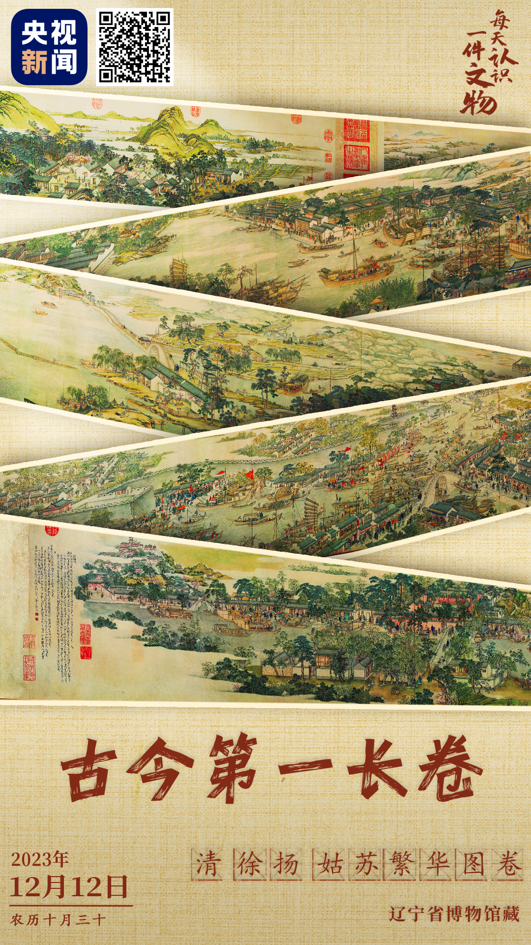清代宫廷画家徐扬创作的《姑苏繁华图卷》全长超12米,比《清明上河图》还长一倍,被称作“古今第一长卷”。据粗略统计,在《姑苏繁华图卷》中,人物多达12000余人,官船、货船、客船等近400条,可以辨认的各类招牌有260余家,充分展示了盛清时期苏州高度文明的盛况。