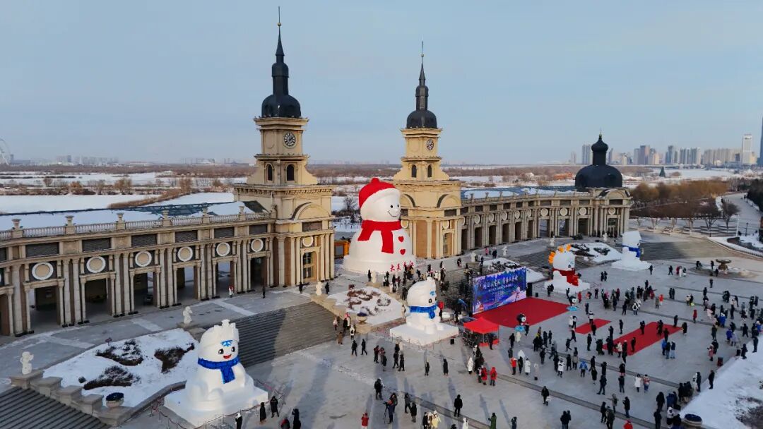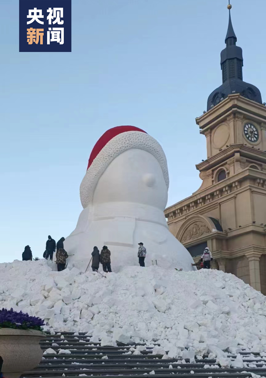 12月15日,黑龙江哈尔滨道里区群力音乐长廊大雪人再次与大家见面