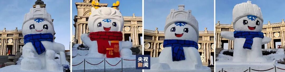 它们分别设计成了冰壶、雪圈滑雪、单板滑雪,以及龙年的雪雕造型每一个雪雕分别长7米、宽6米、高8米单个用雪量约为336立方米