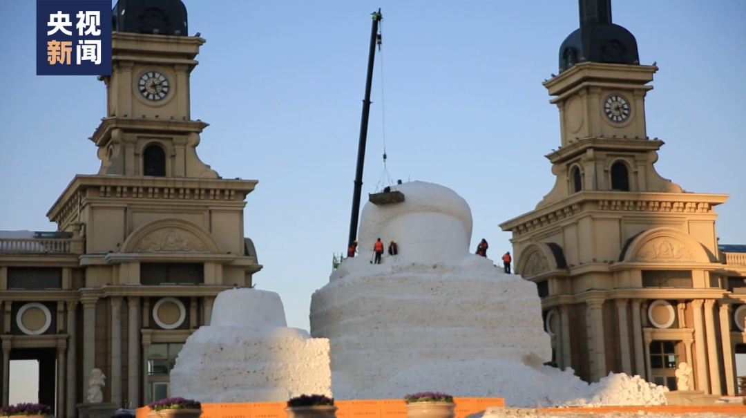 李秋实介绍,雪人的堆砌过程中要满足雪量在2300立方米左右首先是去皮用油锯、冰铲等将雪人外层多余的雪去除修出一个基本的造型“由上至下,一层一层向下推