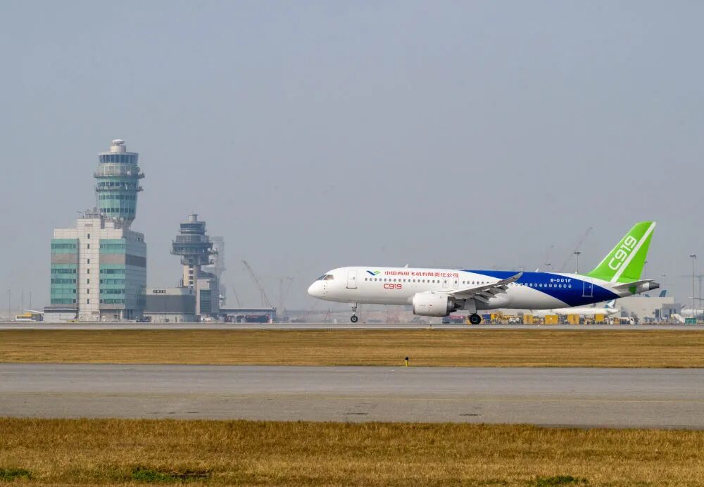 12月12日下午,C919飞机降落香港国际机场。新华社发