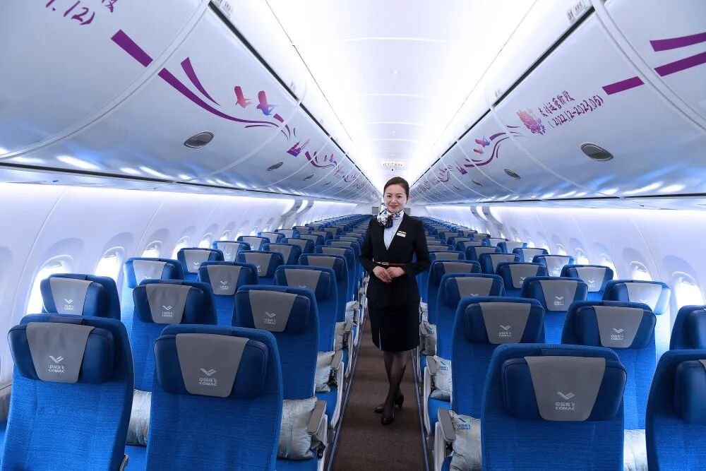 这是12月13日拍摄的C919飞机经济舱。新华社记者 陈铎 摄